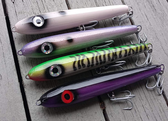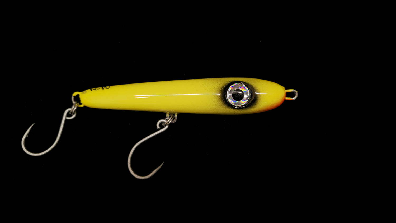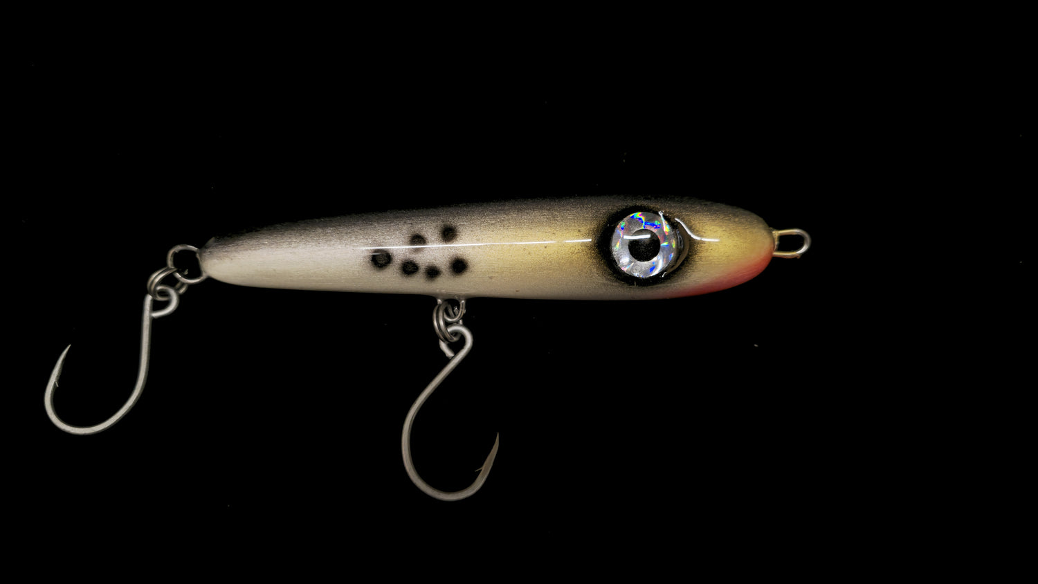 The Bully is a full resin spook bait that can be worked slow or quick across the surface of the water, gliding side to side (aka - walking the dog).