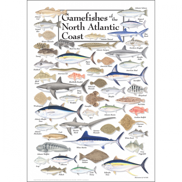 • This stunning poster includes the 72 gamefish species most commonly targeted on the Atlantic coast from the Virginia coast up to an including Atlantic Canada, both nearshore and offshore.