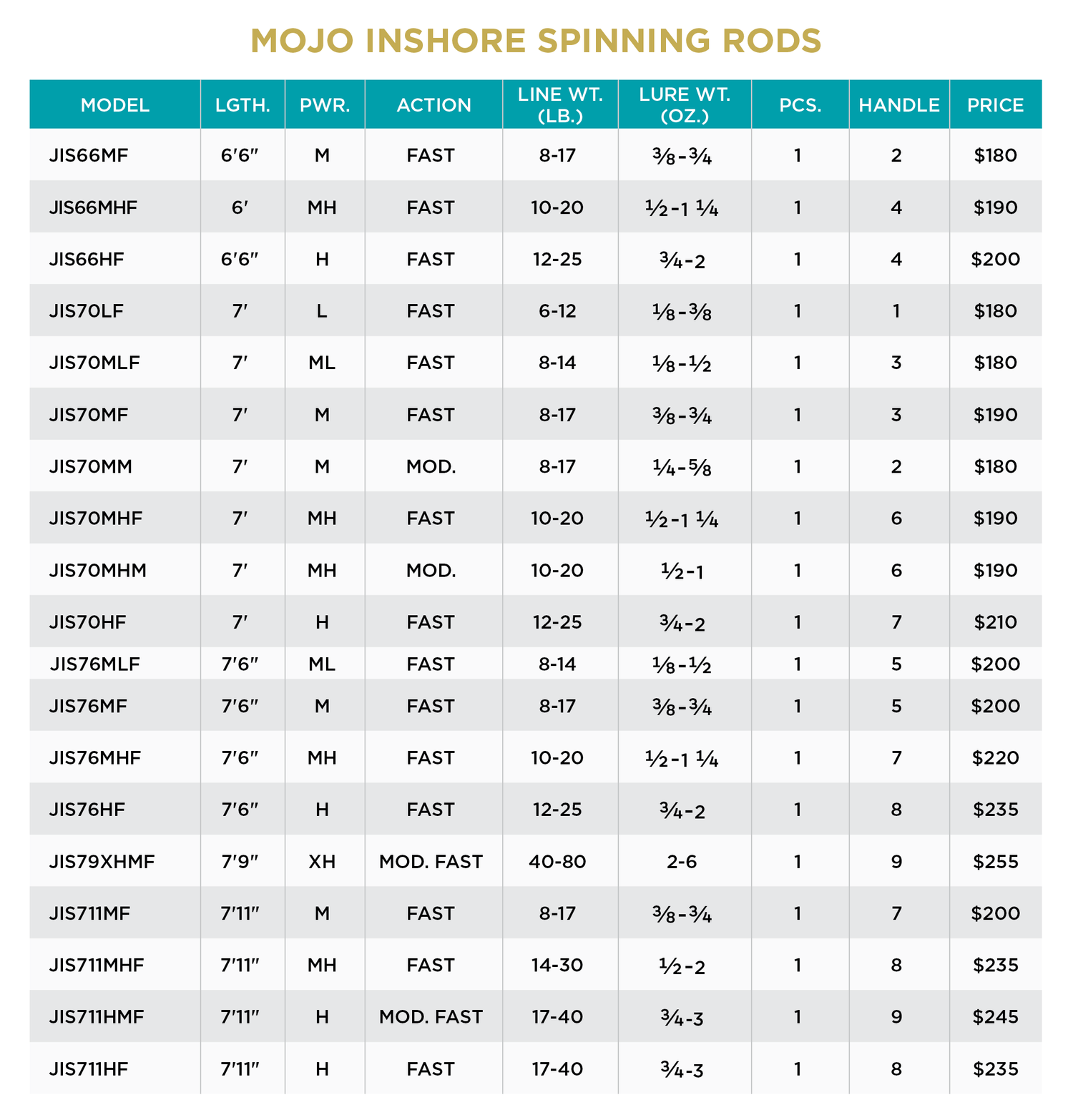 - MOJO INSHORE SPINNING RODS feature: