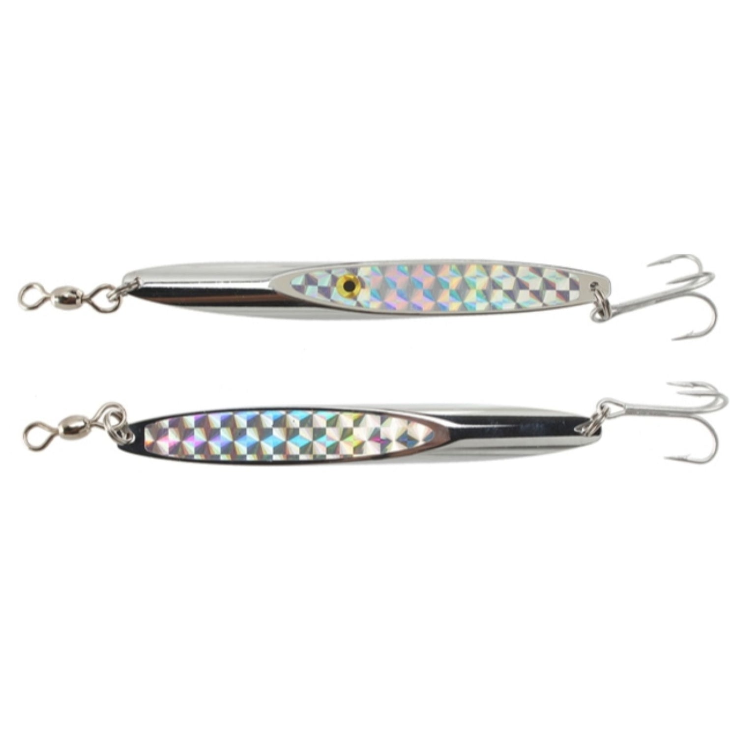 The Tsunami Slimwave Saltwater Jig allows saltwater anglers to take to the waves. The body of the Slimwave features a hand polished chrome finish and reflective prism tape that grabs the attention of all predators in the area, while the custom taper swimming action is irresistible. Built with a genuine Mustad hook, stainless steel split ring, and heavy duty swivels, this lure is made to last.