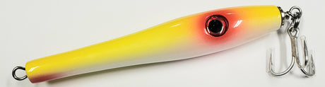 HIL POPPER WHITE 3.75" YELLOW BUCKTAIL 3/4-1 OZ WOODEN THRU-WIRE NEUTRAL