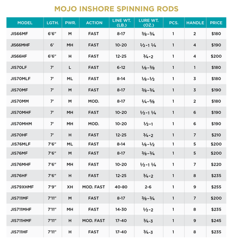 ST CROIX MOJO INSHORE SPINNING ROD 7'11" M F 8-17 LB JIS711MF
