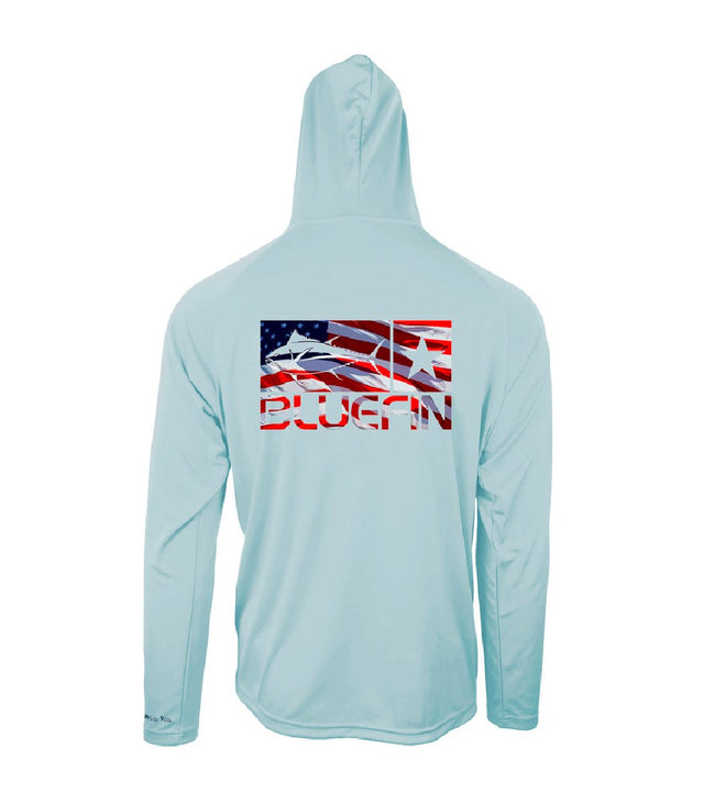 This special edition American Bluefin Superleggera Solar Hoodie features Bluefin USA’s latest patriotic American logo design.