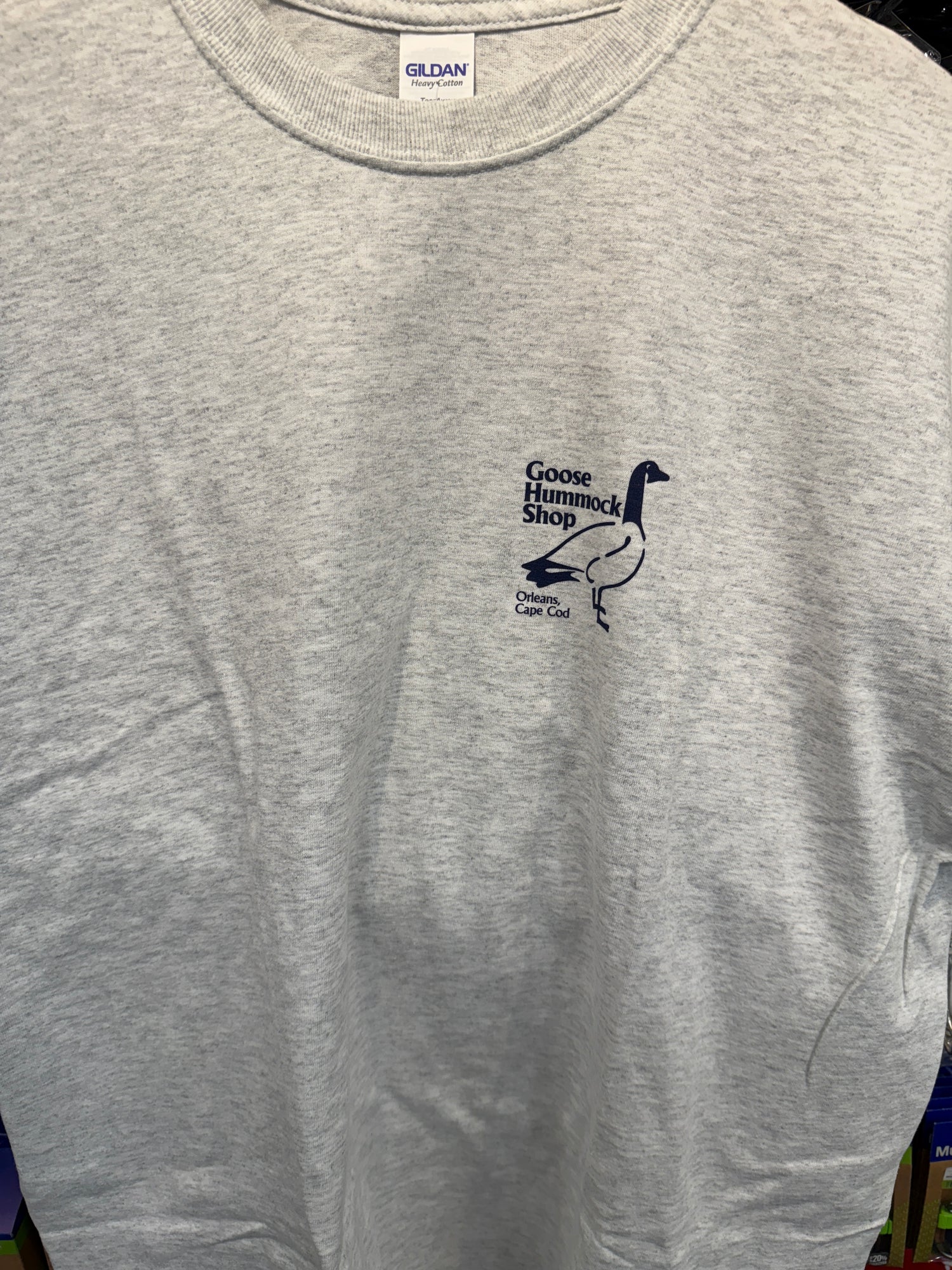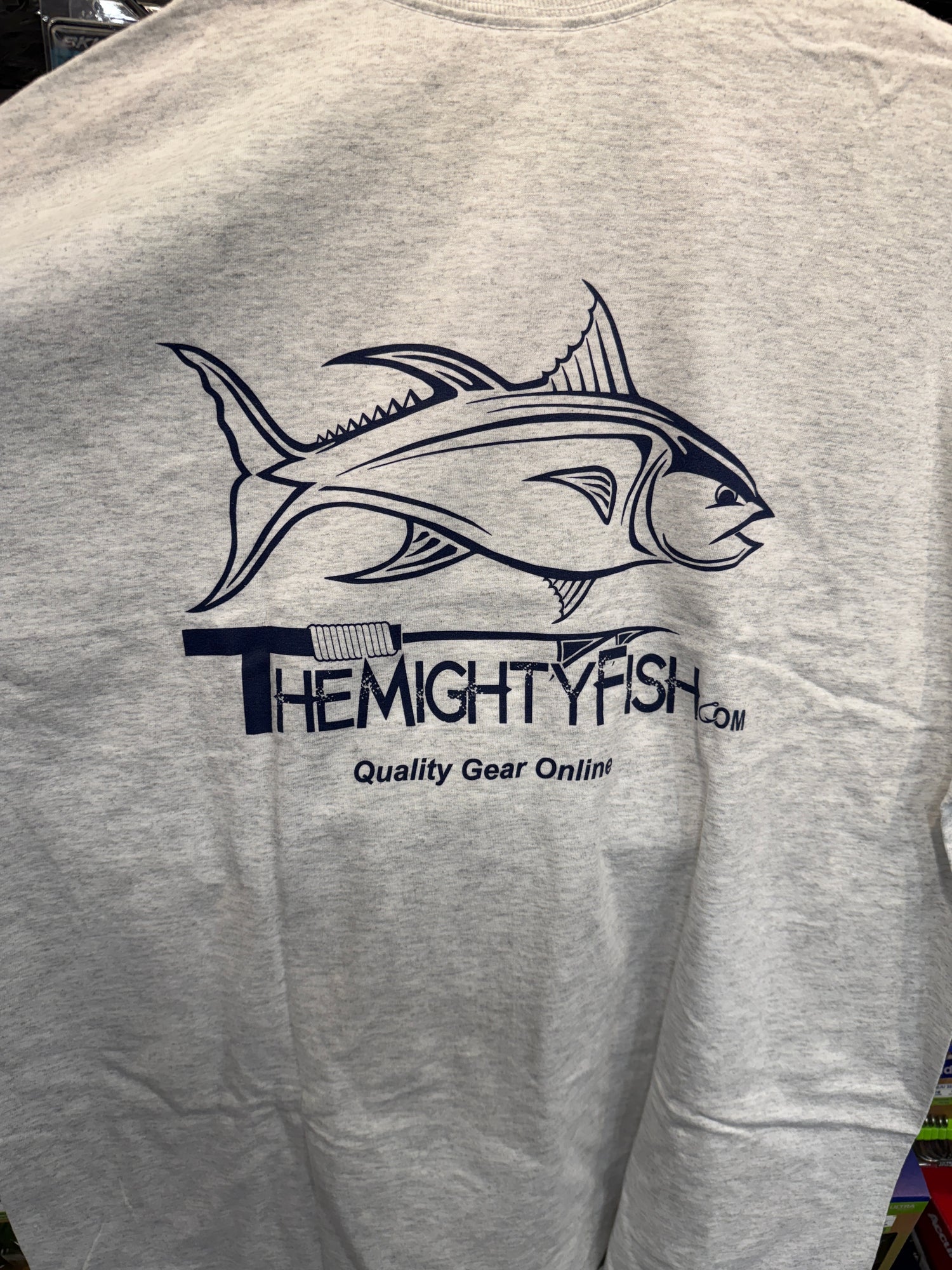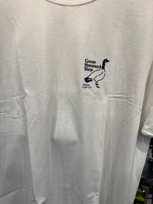 Goose Hummock logo on the front and the Mighty Fish logo on the back.  This is a closeout item