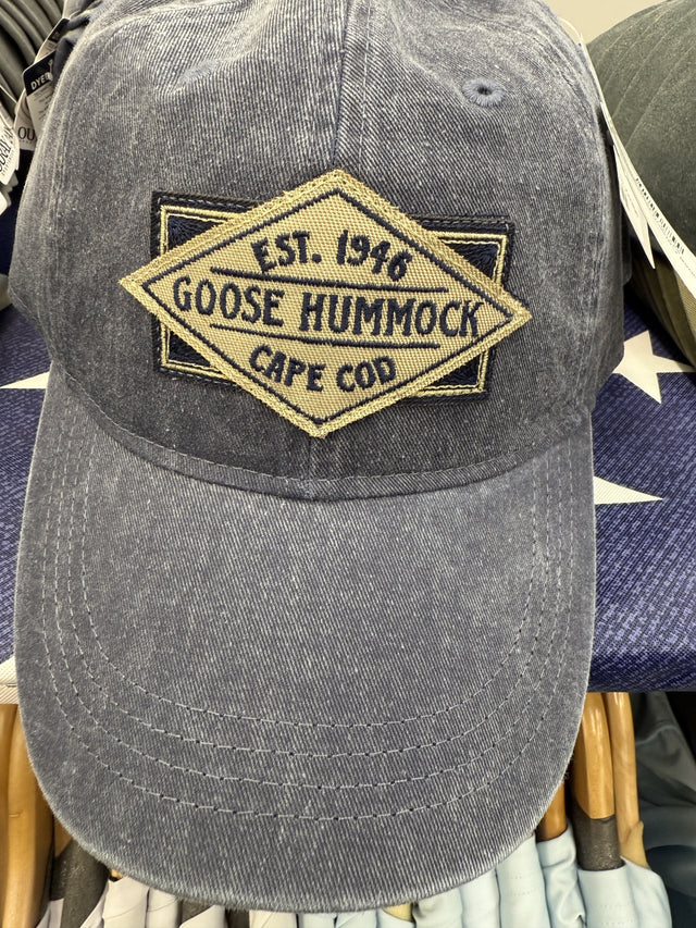 The classic Goose Hummock logo in a vintage color hat. Adjustable in the back. Dad hat fit.