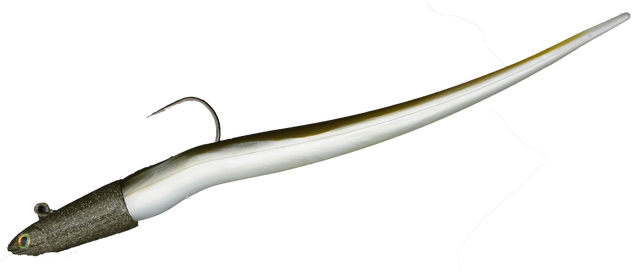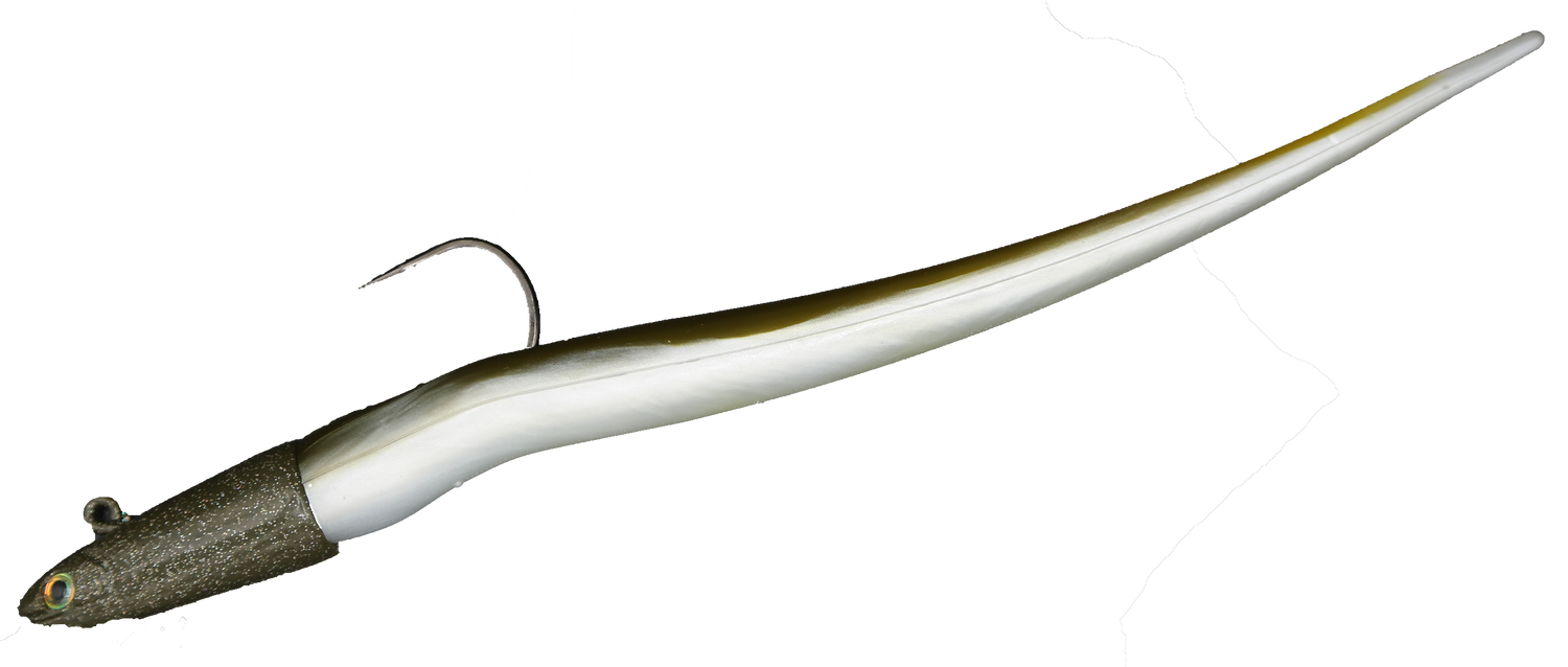 The Bill Hurley Cape Cod Sand Eel matches up perfectly with the bait and has incredible action. Made from real sand eel oil.