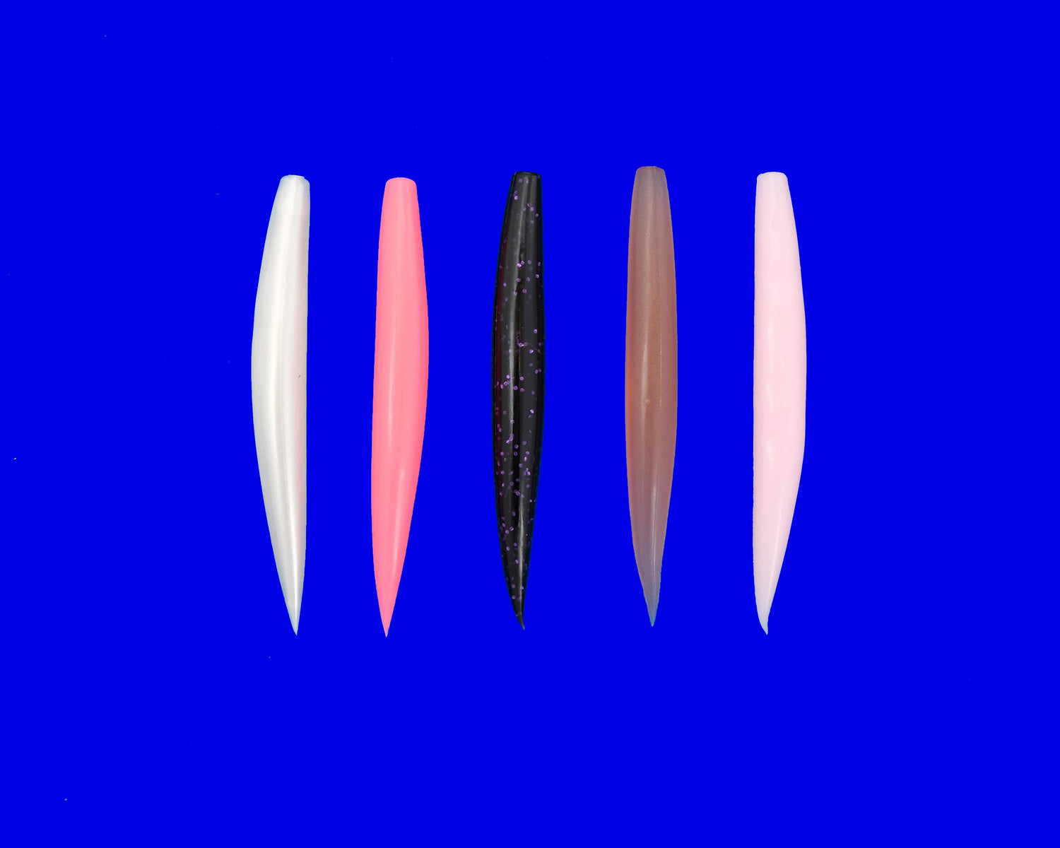 5 inch bait effective for False Albicore, Stripers, Bluefish, Redfish and other inshore fish. Comes in five different colors for those changing light conditions and types of bait. very effective for all small tuna, and a big hit for Bass in the UK and Ireland.
