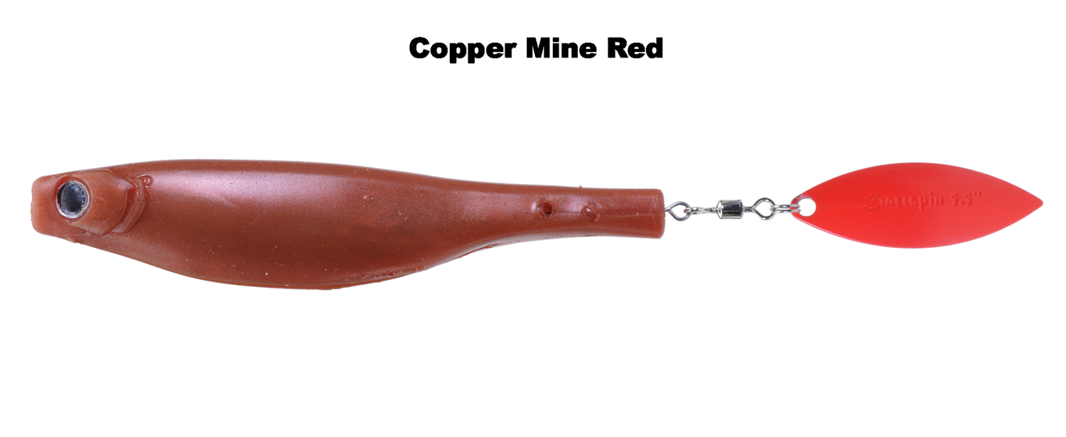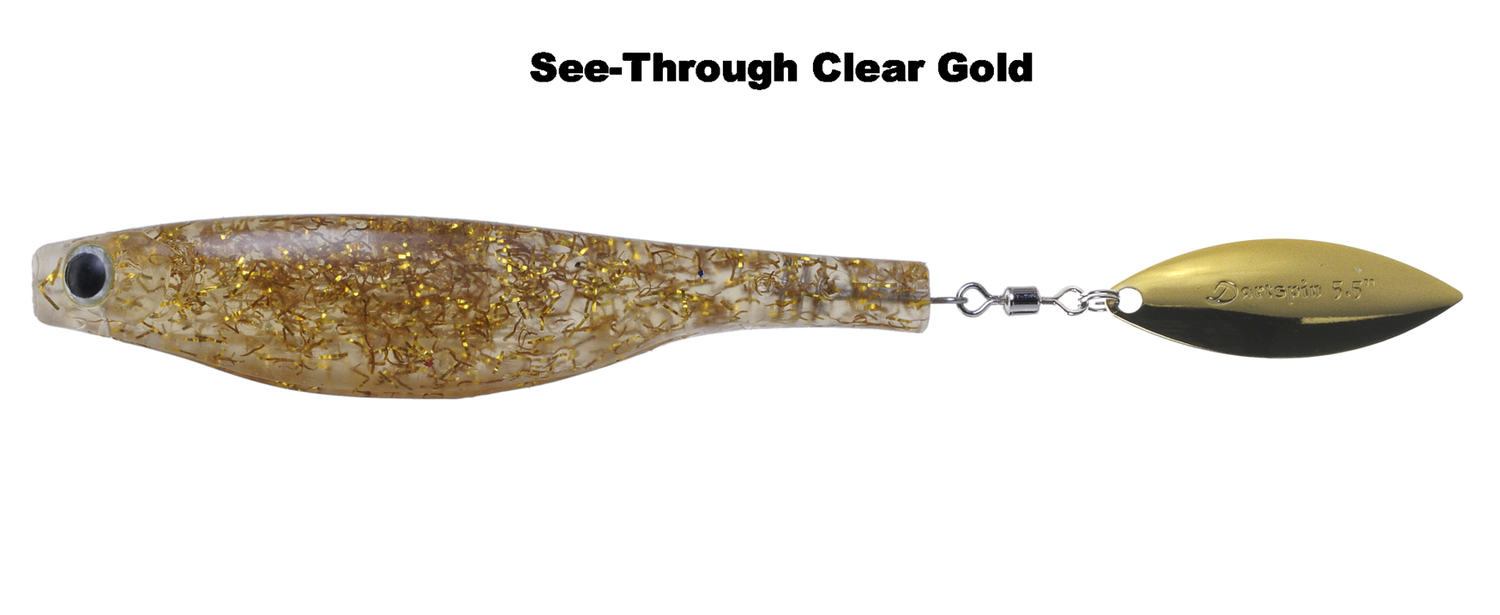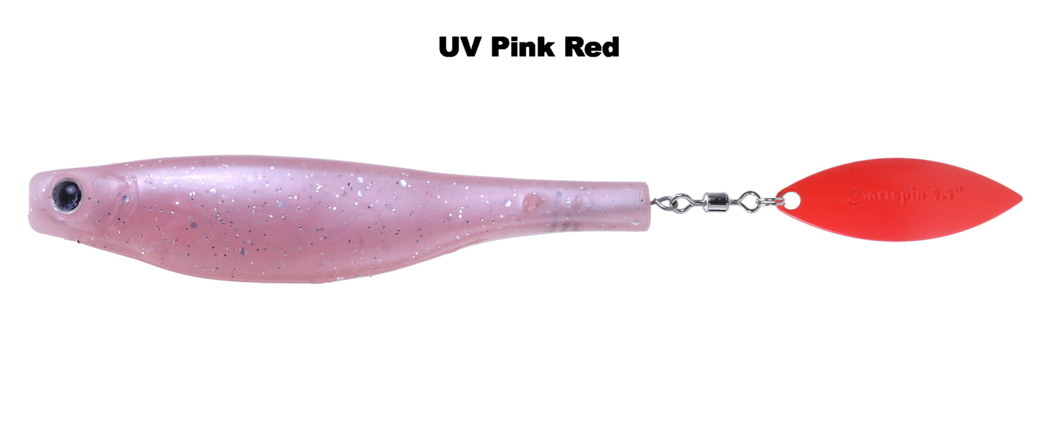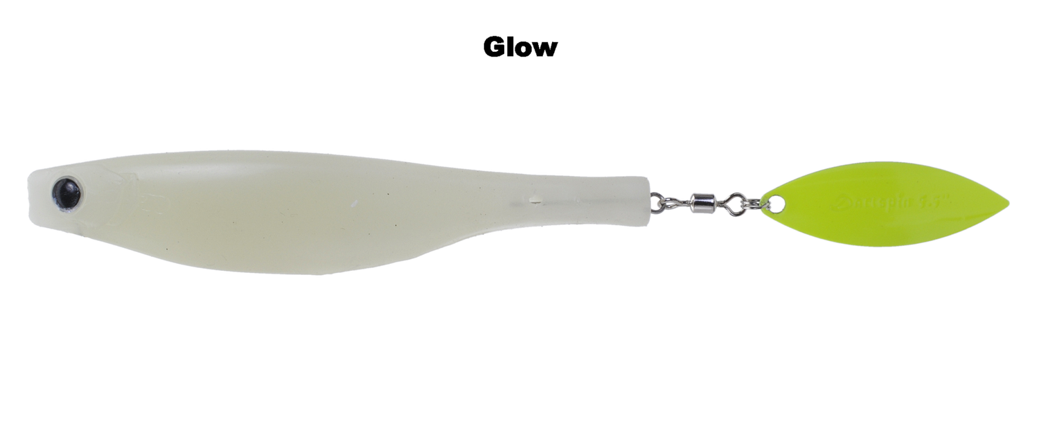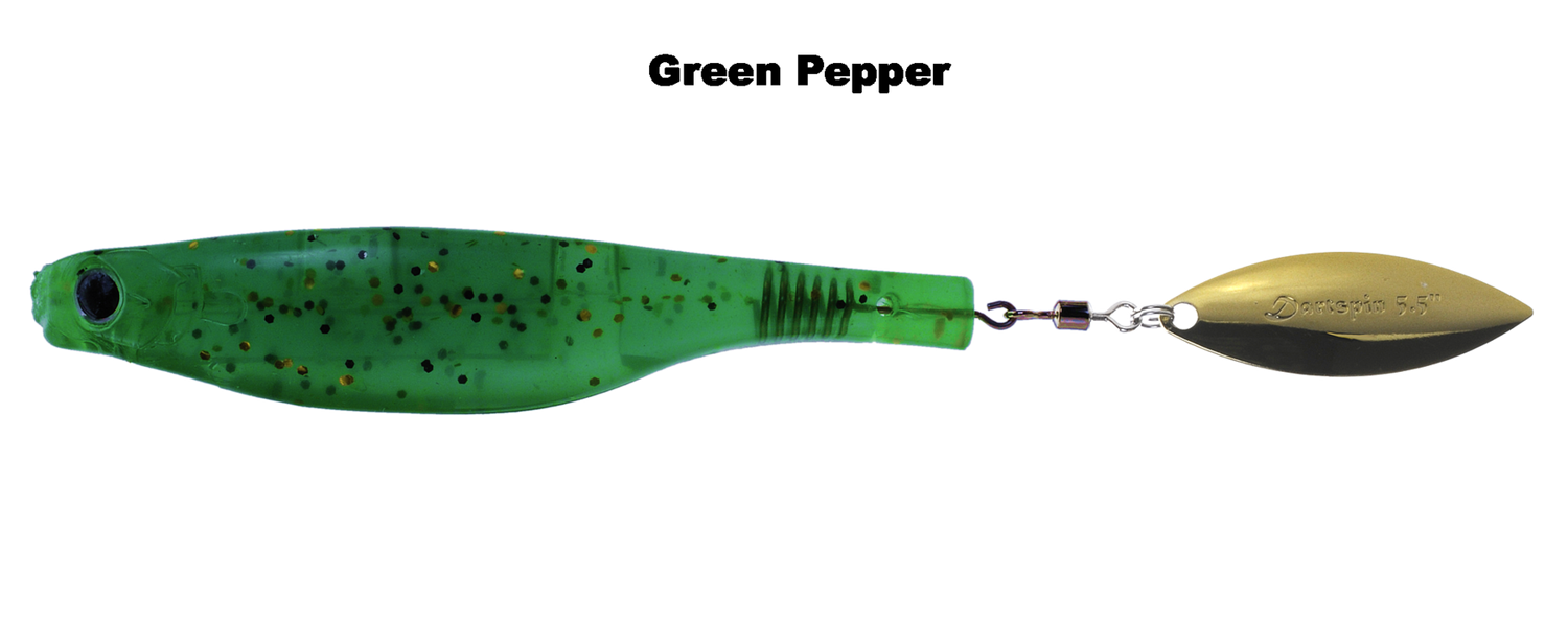 The Dartspin™ is a tough, durable, bladed softbait. It has a minnow shape body with a willow blade solidly embedded into it's tail. Extremely versatile, the Dartspin can be fished on a weedless hook, jig head, dropshot rig, Carolina or Texas rigged, or retrieved on top (or deep) with a circle hook through its nose.