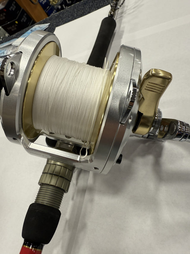 This is the ultimate offshore trolling combination. This combines the Borderline Unlimited Anima Rod in Gold with the Shimano TAC 50 reel. The rod is a spiral wrap. This will handle the largest bluefin or bigeye tuna that you can imagine. As well as marlin, mahi and yellowfin tuna.