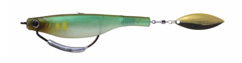 A patent pending screw system allow for a long-lasting connection with swivel and blade, allowing for many catches with low risk of loosing the gear, catch after catch, cast after cast. Molded in hook paths are made into the lure body for easy rigging, including a patent pending system that allow for a greater holding on dedicated jigheads and widegap hooks.