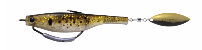 A Patrick Sebile design, the Dartspin Pro is a very versatile and superiorly designed, SofTough plastic bait with a minnow shape and a willow blade solidly embedded into its tail. The Dartspin Pro is designed to do what you want: cast and retrieving, trolling, twitching, pitching, jigging into heavy cover or open water, fresh or salt, shallow or deep. No matter the action, it follows what you want it to do as it offers a wide variety of action depending on how it is used, making the Dartspin one of the most versatile lures ever designed. The Dartspin comes in colors and sizes to catch anything, anywhere!