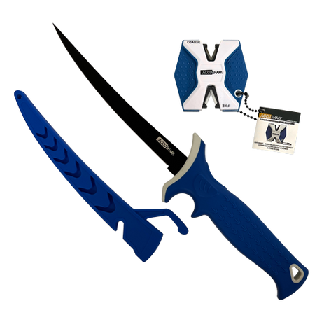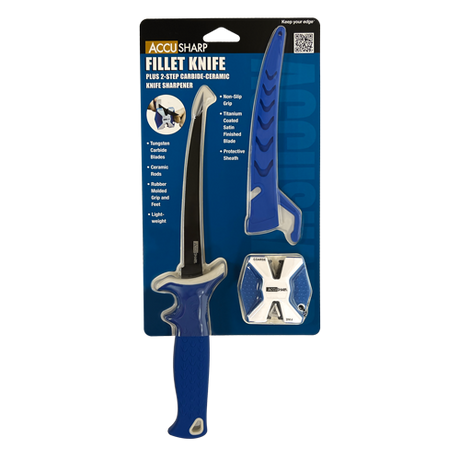 ACCUSHARP FILLET KNIFE WITH TWO-STEP CARBIDE SHARPENER AND SHEATH
