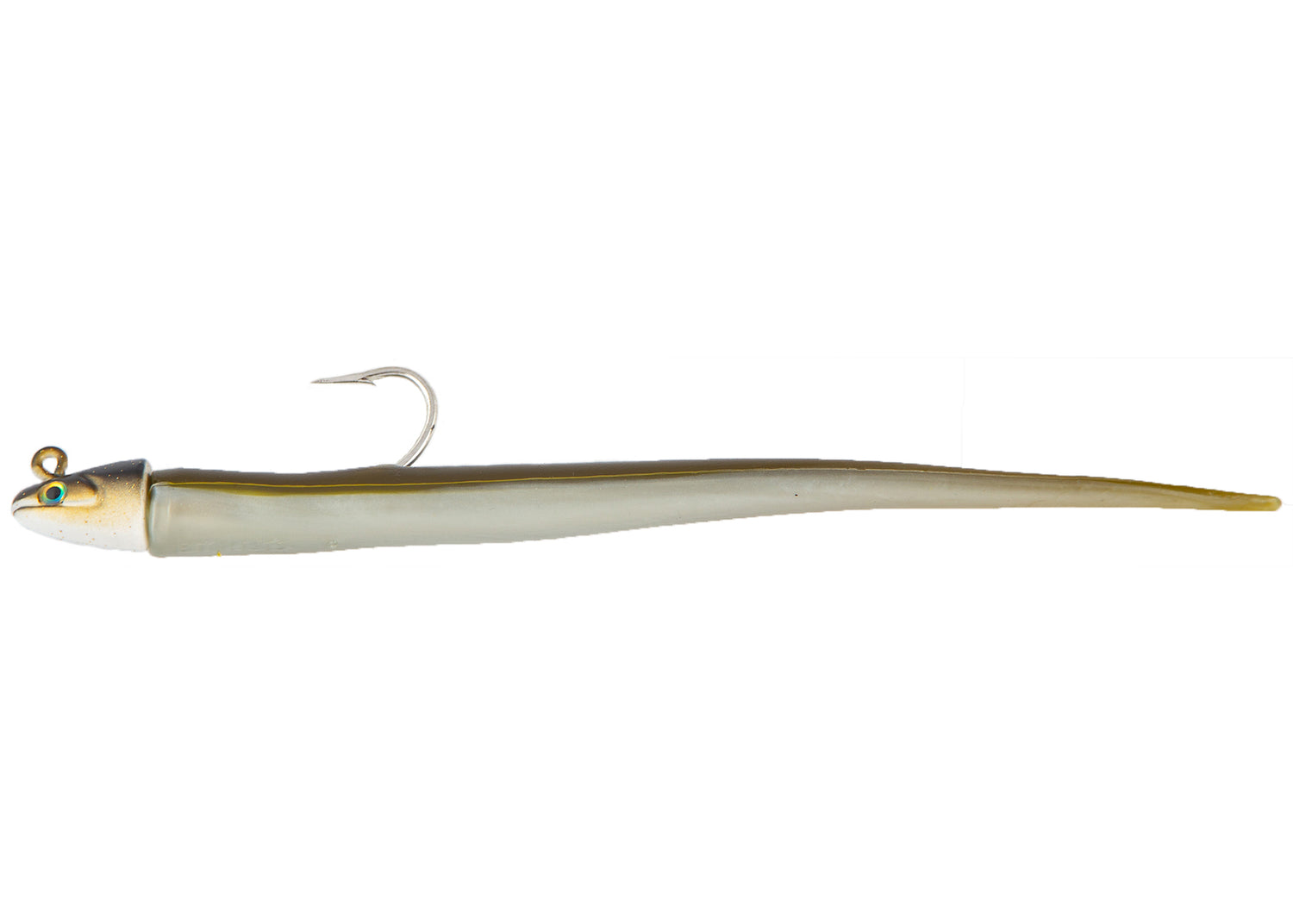The Bill Hurley Cape Cod Sand Eel matches up perfectly with the bait and has incredible action. Made from real sand eel oil.