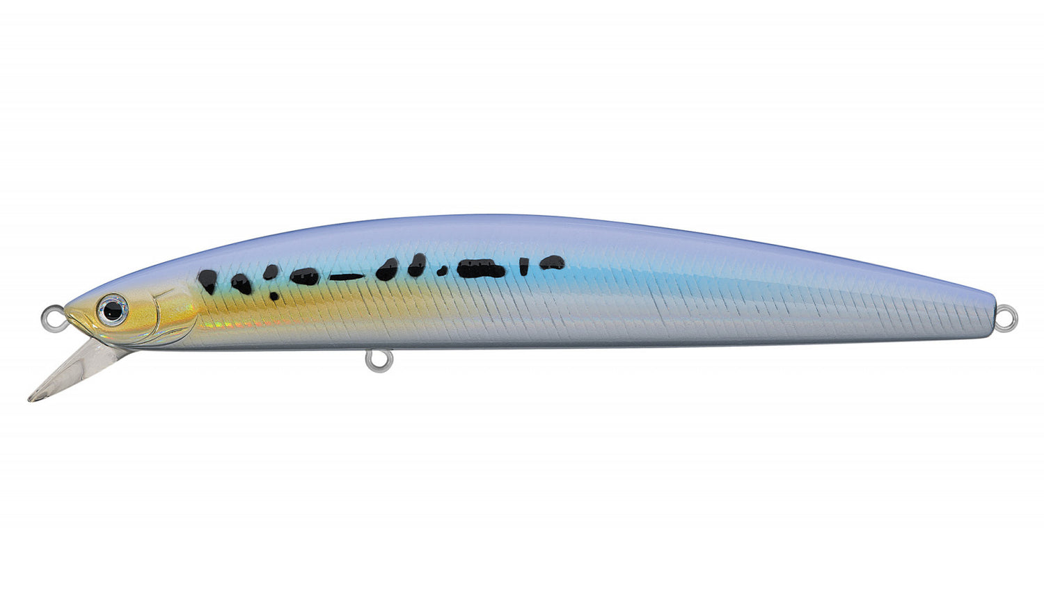 Just about any game fish in the sea will smack a Daiwa Salt Pro Minnow. Its long, thin body profile combines a flashy, ultra-realistic scale pattern and 3-D eyes with an aggressive swimming action to bring smashing strikes at any point during the retrieve. The Salt Pro Minnow's internal weight transfer system, designed to deliver long, smooth casts, produces an erratic side-to-side swim that's ideal for quick, ripping retrieves. Floats at rest and dives to 3' on a long pull. Equipped with heavy-duty saltwater hooks.