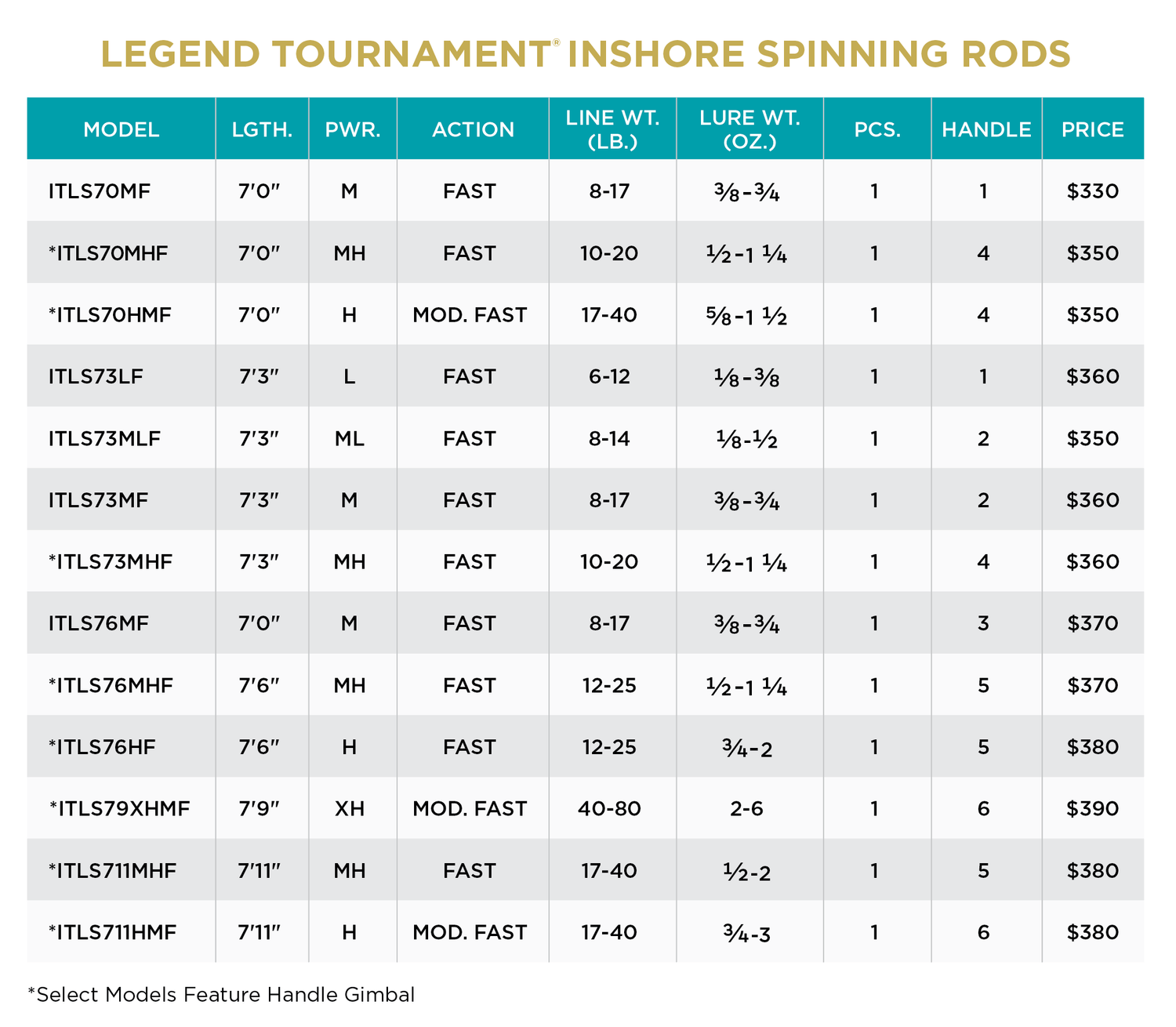Legend Tournament Inshore rods are designed and handcrafted in Park Falls, U.S.A. Rods are loaded with proprietary St. Croix Rod technologies: IPC, ART, FRS.