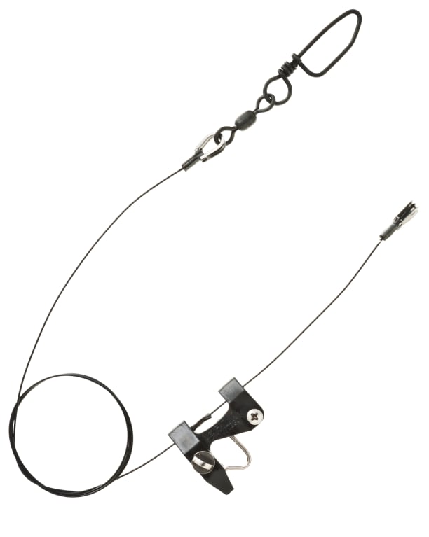 Simply snap Black's Downrigger Release Clip Assembly onto the existing end of your downrigger. The Clip Assembly allows the ball to remain safely in the water while you attach your fishing line. Assembly is constructed with 30" of 135 lb. nylon-coated stainless steel wire and stainless steel thimbles, with a heavy-duty snap lock and swivel. Made in USA.