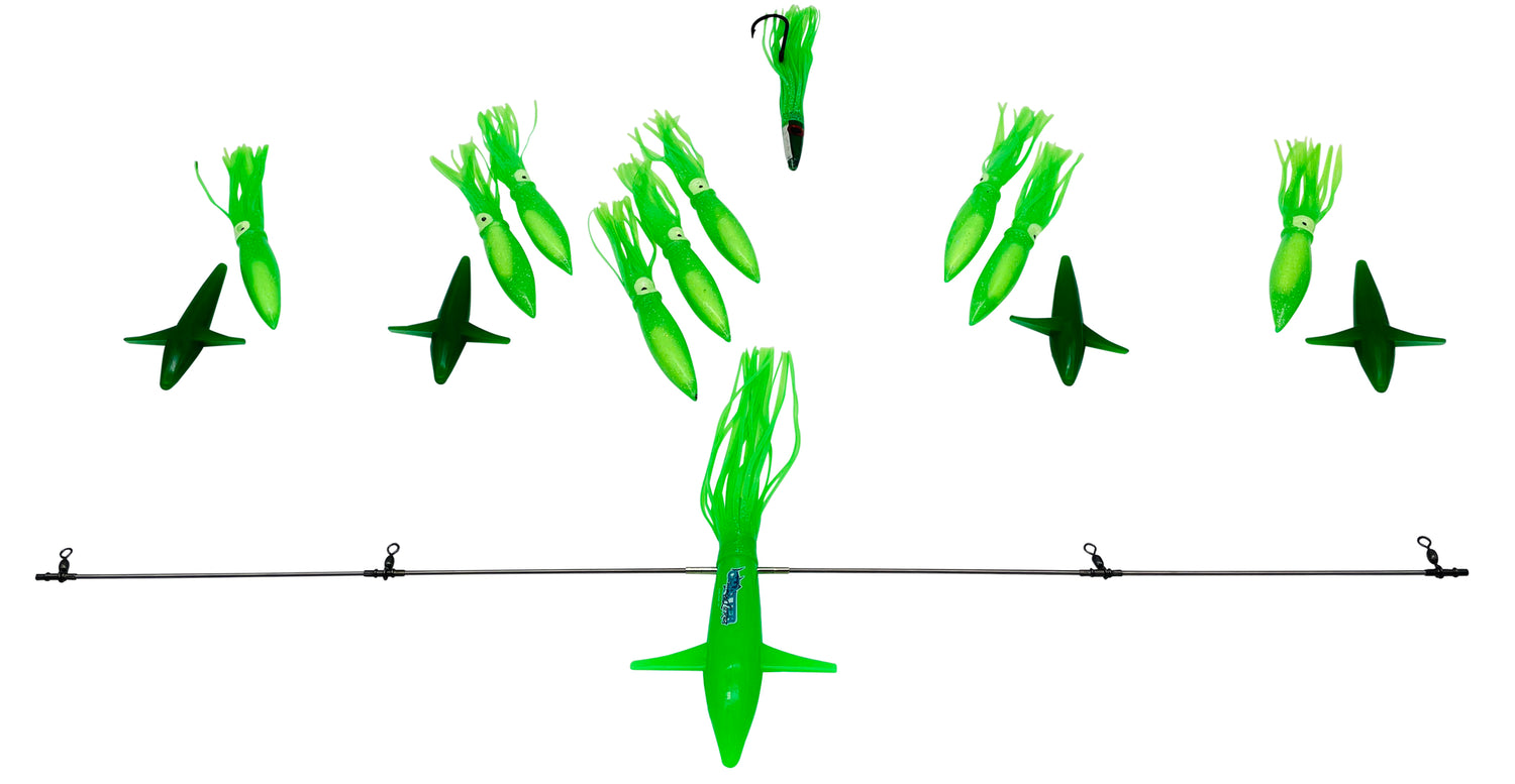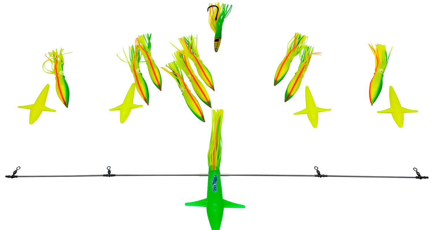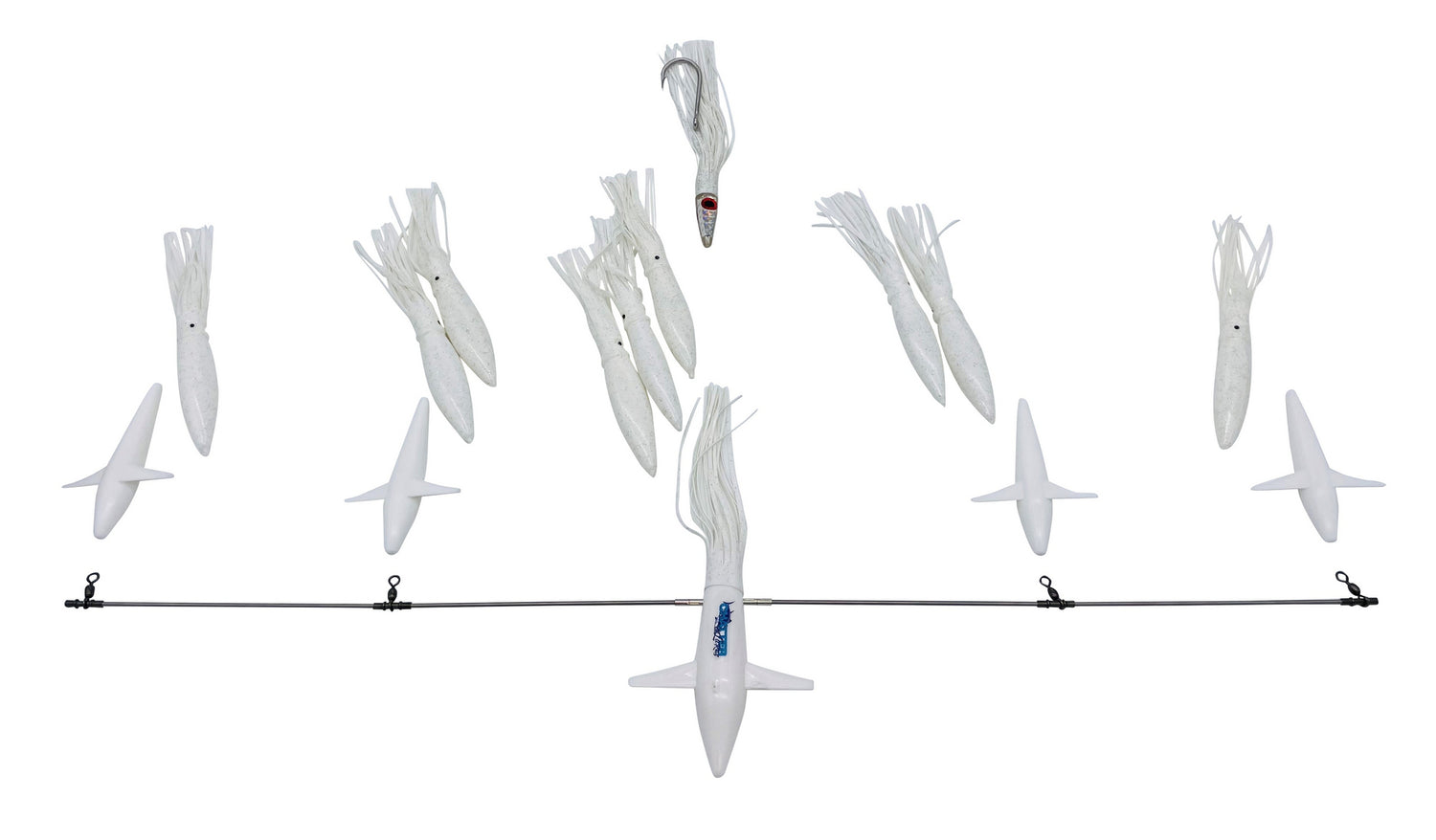 - 36" Spreader Bar (1/8") with patented Side Tracker Bird and (4) 5" chatter birds.
