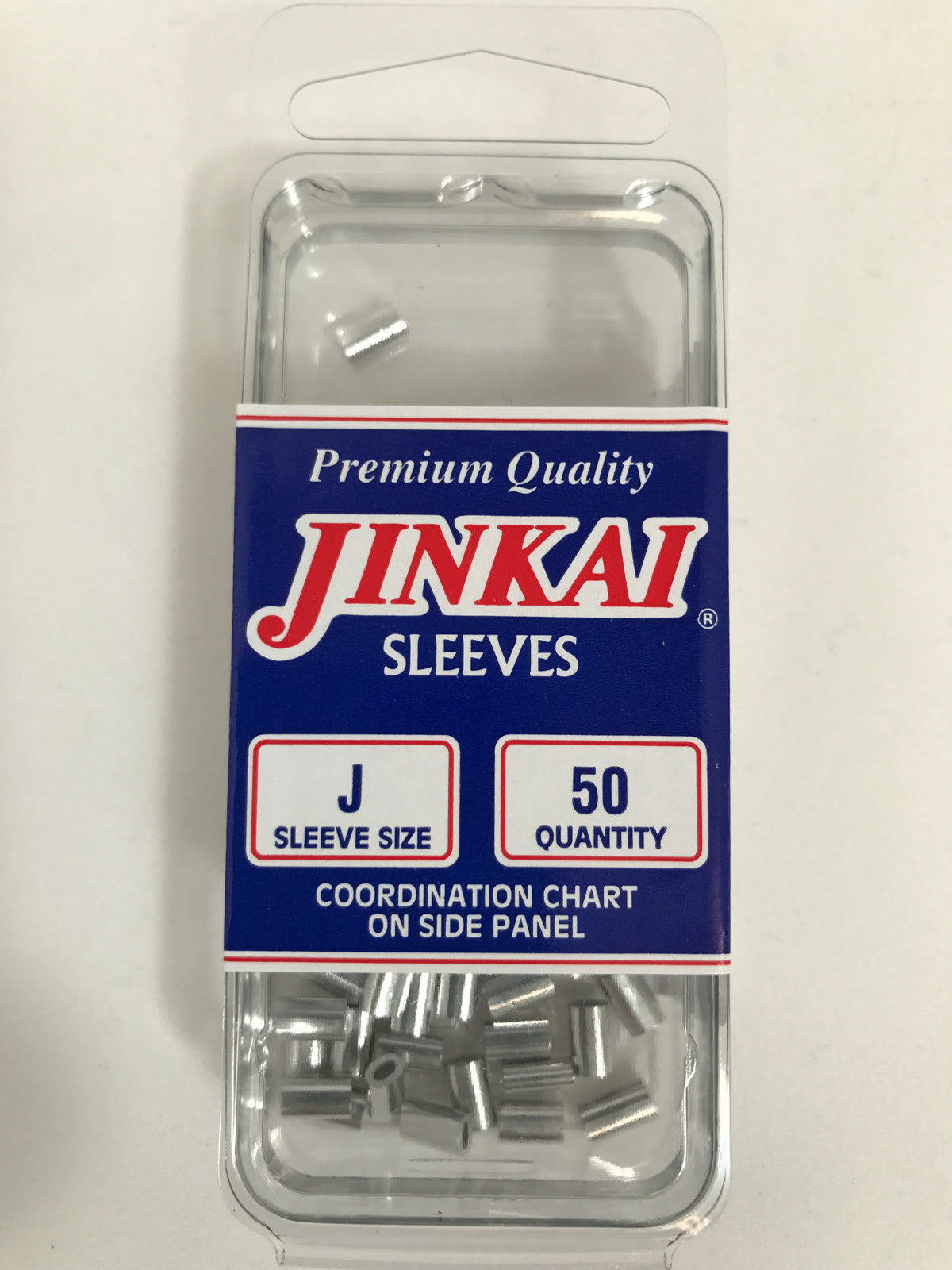 JINKAI Sleeves are made from a special aluminum alloy that is easy to crimp and resists electro-corrosion in saltwater. The soft metal and oval shape work together to provide a permanent crimp without compromising line strength. A wide variety of sizes coordinate for use with all lb. tests of JINKAI Line.