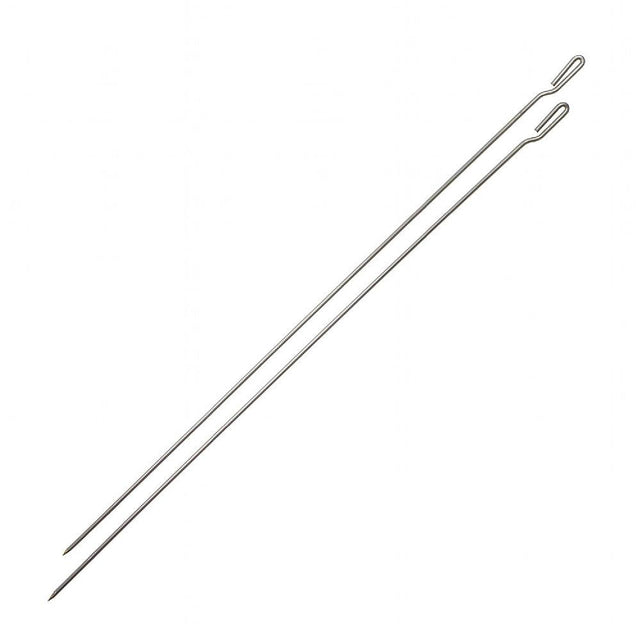 Long, open eye ballyhoo rigging needles for use with a bead chain when rigging Ballyhoo.