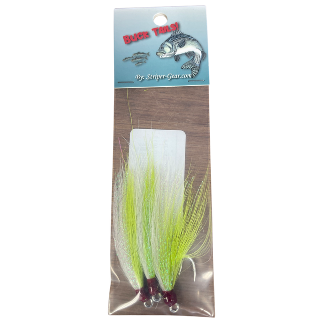 STRIPER-GEAR BUCK TAIL HOOK SIZE 1/0 - CHARTREUSE/WHITE / 3 is backordered and will ship as soon as it is back in stock.