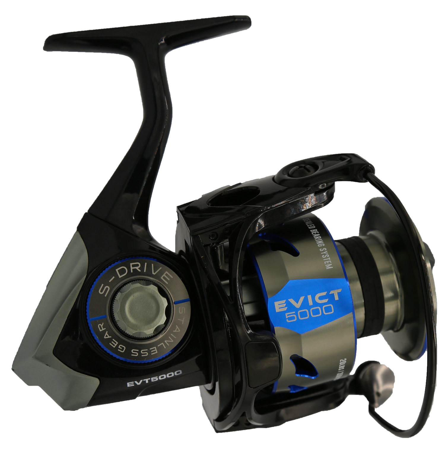Tsunami Evict Spinning Reels are the must have bottom fishing spinning reel. Many anglers are starting to bottom fish with spinning gear. When you aren't into conventional reels but still want to battle big and powerful bottom dwellers, the Evict spinning reels have you covered. These reels are constructed with a stainless steel main gear, stainless steel pinion and a sealed stainless steel main shaft. The eight sealed stainless steel ball bearings on these reels allows for smooth action and increased corrosion resistance. These reels can be used like a winch when getting big fish off the bottom with their CF3 carbon fiber drag system. These spinning reels are great even if you're top water fishing. They cast well and are ideal for live bait fishing. A great spinning reel that won't break the bank.